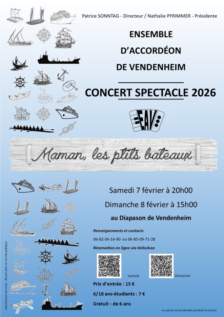 Bonjour les amis de l'accordéon, de la musique , du chant et de la danse! L'EAV vous invite à son concert-spectacle 2026 "Maman les p'tits bateaux". Voici notre affiche.